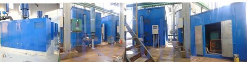 1、采用吸聲材料裝飾 污水處理廠的鼓風機房內墻及頂棚最好采用吸聲材料裝飾,吸掉一部分直接傳在墻壁上的聲能,同時防止反射音的來回混響音,吸聲材料的選擇見前面的敘述。還可在不妨礙天車等機械裝置運行情況下,懸掛一些噪聲吸聲體,進一步吸收直達音和反射音,常用的吸聲體有平板形、球形、圓錐形、圓柱形等。其表面粘有吸聲材料,懸掛位置盡可能靠近聲源,并注意不影響采光、照明、檢修和巡視等。此法簡單、宜行,價格便宜。