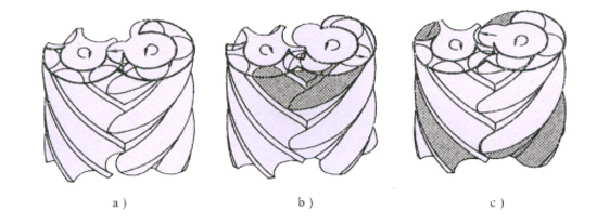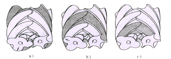 齒間容積與排氣口連通后,排氣過(guò)程開始。轉(zhuǎn)子轉(zhuǎn)動(dòng)過(guò)程中,齒間容積不斷減小,將壓縮后的氣體送至排氣管。此過(guò)程一直延續(xù)到該容積達(dá)到最小值為止。