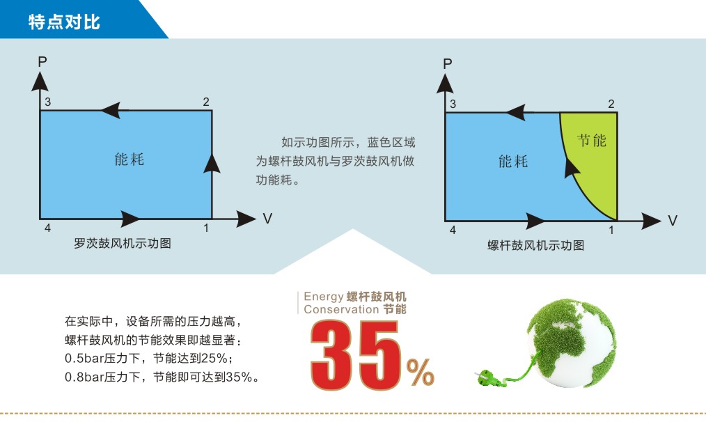 羅茨風機和螺桿鼓風機都是屬于容積式風機,如果兩者要進行比較的話,可以簡單歸結為壓縮原理的不同,螺桿鼓風機的節能、穩定、低噪優勢更為突出。