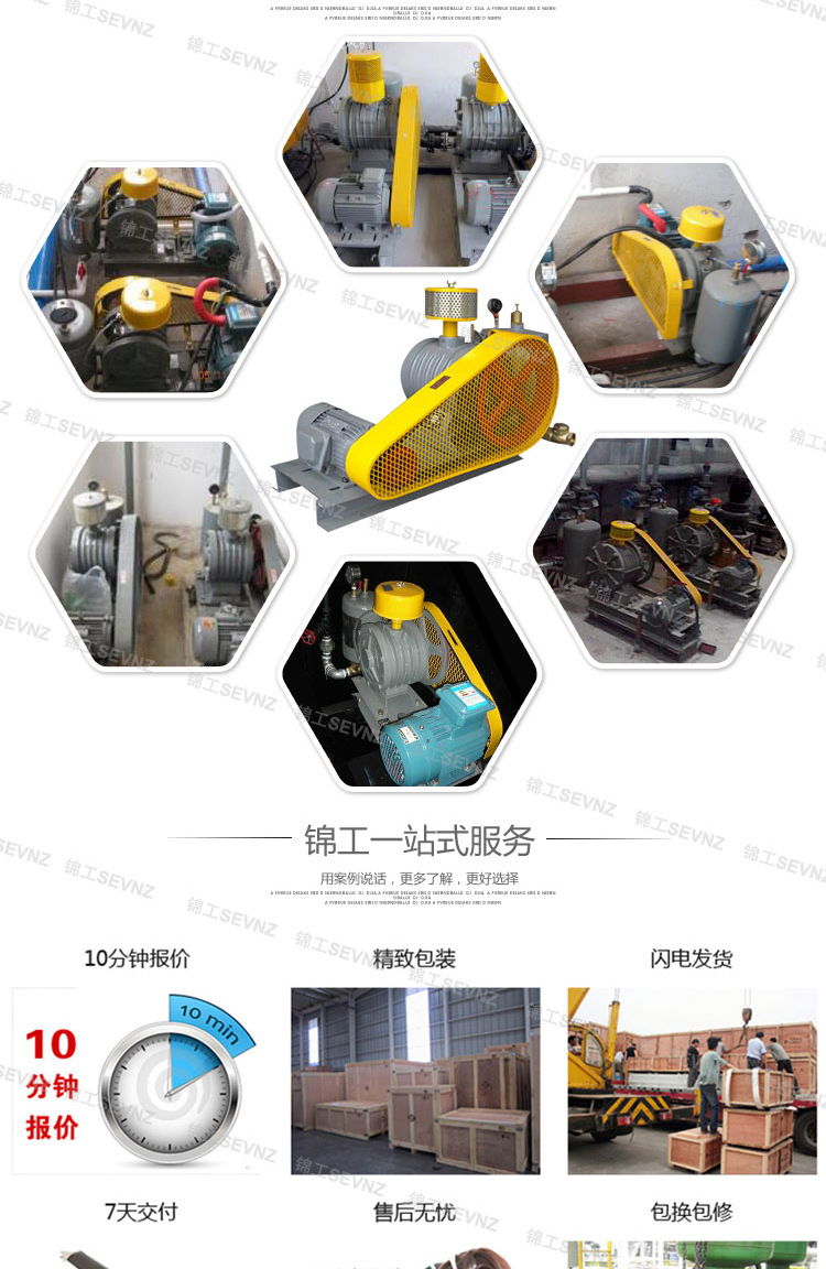 回轉(zhuǎn)鼓風(fēng)機特點:1、結(jié)構(gòu)體積小、運行排出風(fēng)量大、正常運行噪聲低、能耗低。采用通過改變密閉空間的原理,雖然結(jié)構(gòu)體積小,但運行排出風(fēng)量大、節(jié)能環(huán)保、運行噪音小等特殊優(yōu)點是其他形式的風(fēng)機無法比擬的。2、安裝方便,運行平穩(wěn),結(jié)構(gòu)特性好。小型機種運轉(zhuǎn)時只要放置妥當(dāng)則振動很小,不需要加裝防振裝置,安裝方便。)3、運行抗負(fù)荷變化能力大,輸出風(fēng)量穩(wěn)定。例如:在污水處理行業(yè)中,當(dāng)曝氣池水深變化時,即壓力發(fā)生變化,則負(fù)荷大小發(fā)生變化,但是排出風(fēng)量隨壓力變化而變化甚小。4、帶有空氣緩沖室,排出氣體平穩(wěn)。全部機種均帶有空氣緩沖室,可有效防止空氣脈動,使排出氣體連續(xù)平穩(wěn)。5、材質(zhì)精良,結(jié)構(gòu)巧妙,性能卓越。鼓風(fēng)機全部采用優(yōu)質(zhì)的材料,結(jié)構(gòu)精巧,堅固耐用,性能卓越,長期使用故障少。6、保養(yǎng)簡單,故障少,壽命長。低轉(zhuǎn)速,磨損小,壽命長。7、錦工回轉(zhuǎn)風(fēng)機標(biāo)配電機為山東華力電機集團股份有限公司生產(chǎn),質(zhì)量穩(wěn)定可靠。8、錦工回轉(zhuǎn)風(fēng)機出廠前都經(jīng)過了48小時的試運行,調(diào)試合格才能發(fā)貨,保證了風(fēng)機出廠的質(zhì)量。售后服務(wù):錦工回轉(zhuǎn)風(fēng)機若在保修期內(nèi)出現(xiàn)質(zhì)量問題,能現(xiàn)場解決的公司維修人員將在48小時內(nèi)趕赴現(xiàn)場服務(wù),若風(fēng)機出現(xiàn)重大質(zhì)量問題,可以調(diào)換新風(fēng)機。